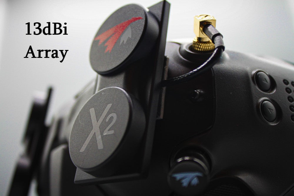 A pair of TrueRC X2-AIR 5.8 MK II antennas, designed for DJI FPV goggles, provides an improved gain of 13dBic and a wide beam width of 180° for excellent flight performance even in challenging conditions. Thanks to the thin, low-profile design of 15 mm thickness, the antennas are compact and durable, which allows them to be used continuously without the risk of damage. The two-pole arrangement ensures a circularly polarized beam with a width of 75°, optimizing horizontal coverage. Installation is quick thanks to the self-adhesive back, and special RP-SMA connectors ensure a secure connection and efficient RF power transfer.
