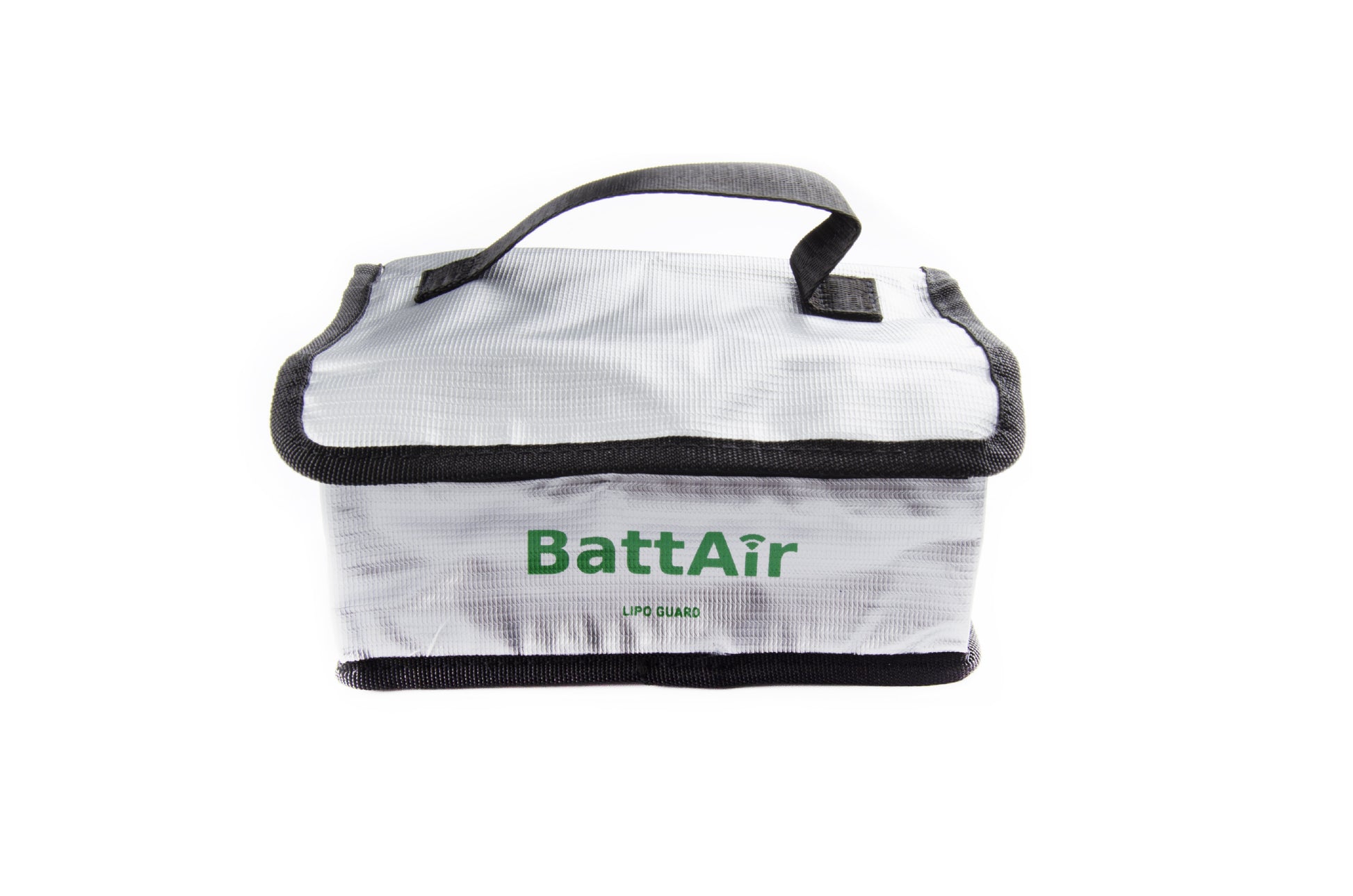 Spacious safety bag that provides an additional layer of protection when charging and storing batteries. Made of fire-resistant material capable of withstanding high temperatures. Ideal for storing multiple batteries at the same time.