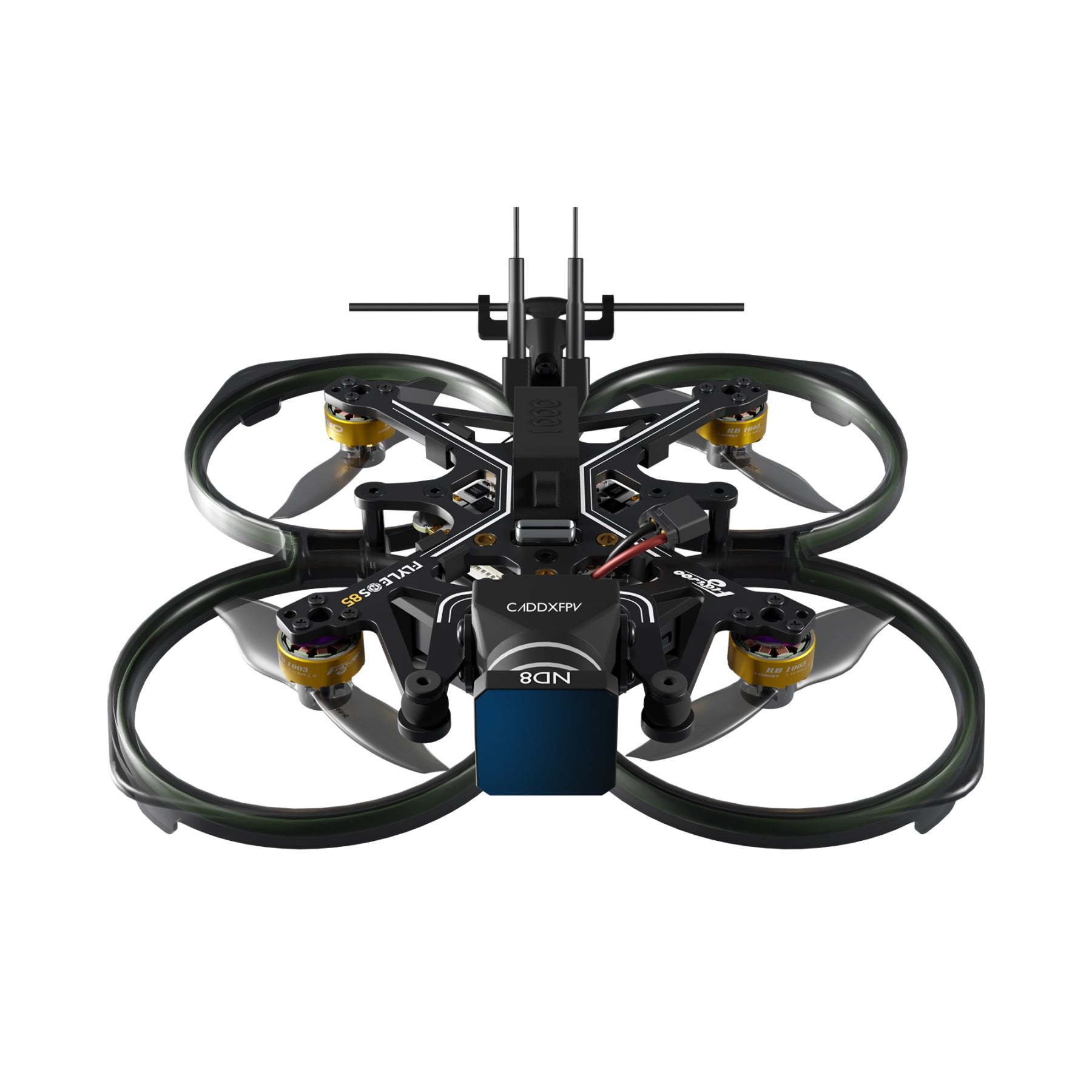 FPV drone FLYWOO FlyLens 85 HD 2S with Moonlight - ELRS V1.3 The Flywoo FlyLens 85 HD Moonlight is a 2-inch drone weighing under 100g that offers true 4K/60 fps digital video in a pocketable design. The Walksnail Moonlight Kit captures amazing detail even in low light thanks to EIS and Gyroflow support, while a three-point CNC damping platform eliminates judder and ensures crystal clear images. The bottom mounted VTX, reverse thrust propeller configuration and carbon black treated frame optimize thrust, reduce noise and keep the center of gravity perfectly balanced. High-strength PC channels protect the propellers and the quick-release frame speeds up maintenance. Powered by ROBO 1003 14800 KV and ELRS V1.3 F405 AIO motors, the FlyLens 85 offers powerful, agile and latency-free flight wherever you go. Specifications: Model: FlyLens 85 HD Walksnail 2S Brushless Whoop Frame: FlyLens 85 standard carbon frame with PC channels Flight Controller: GOKU F405 HD 1-2 S ELRS AIO V2 (ICM42688) VTX and Camera: Walksnail Moonlight Kit (4K/60 fps, bottom mount) Propellers: 2015 2-blade, reverse thrust Engines: ROBO 1003 14800 KV Antenna: Flywoo 5.8 GHz 3 dBi Brass (UFL) LED: Flywoo Flexible LED Strip + 3.3V BEC Weight (without battery): 68.8 g Recommended battery (2 S): 550 mAh - ~2 m 40 s flight, 60 km/h / 750 mAh - ~5 m flight, 60 km/h / 1000 mAh - ~6 m flight, 60 km/h The package contains: 1 × FPV drone FLYWOO FlyLens 85 HD 2S with Moonlight - ELRS V1.3