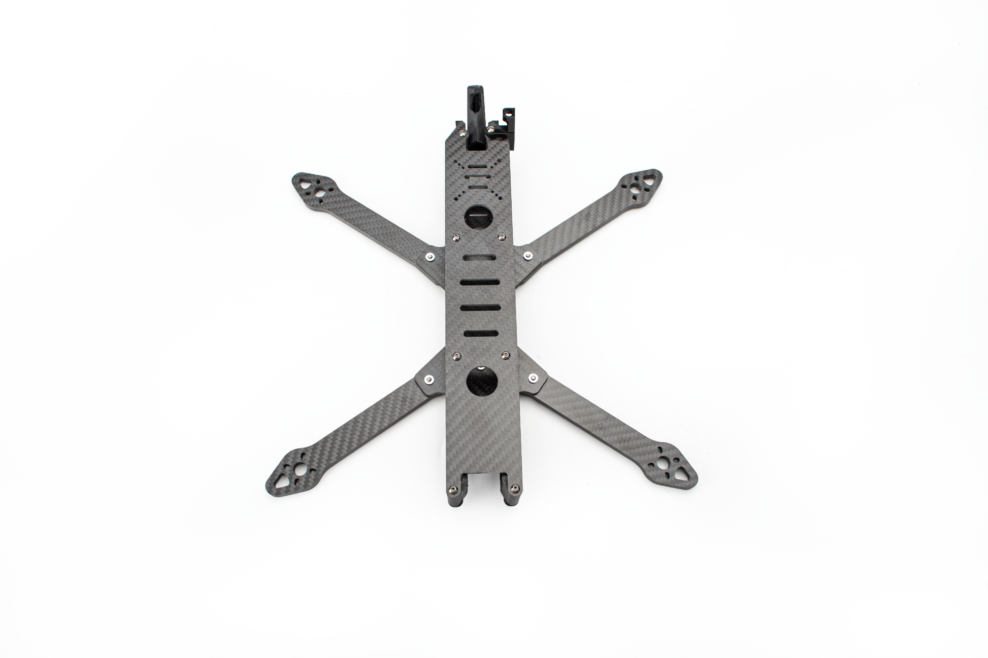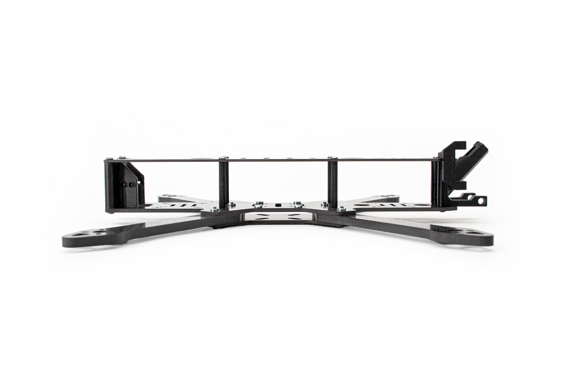 The Partizan Edition PT7 V3 is a 7-inch carbon fiber FPV frame with sophisticated geometry. It features a standard 30.5x30.5mm flight controller mounting pattern, allowing compatibility with a range of existing FCs, and supports 19mm micro cameras. The design ensures stability and minimizes vibration with strong, well-balanced arms and rigid top and bottom plates. The kit includes all necessary mounting hardware for quick and hassle-free assembly. The frame is designed for use with 6S batteries, powerful motors and high performance video transmission systems.