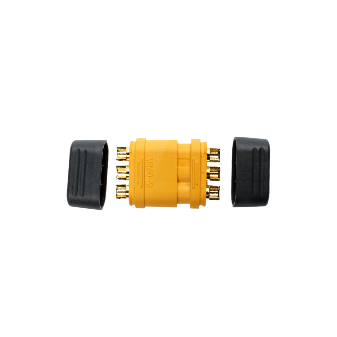 Pilotix MR60 Male+MR60 Female motor connectors The Pilotix MR60 Connector Kit includes both male and female connectors, designed for safe and efficient connection in high performance motor assemblies. Specifications: Connector type: MR60 Male + MR60 Female Color: Black/Yellow The package contains: 1x male connector 1x female connector