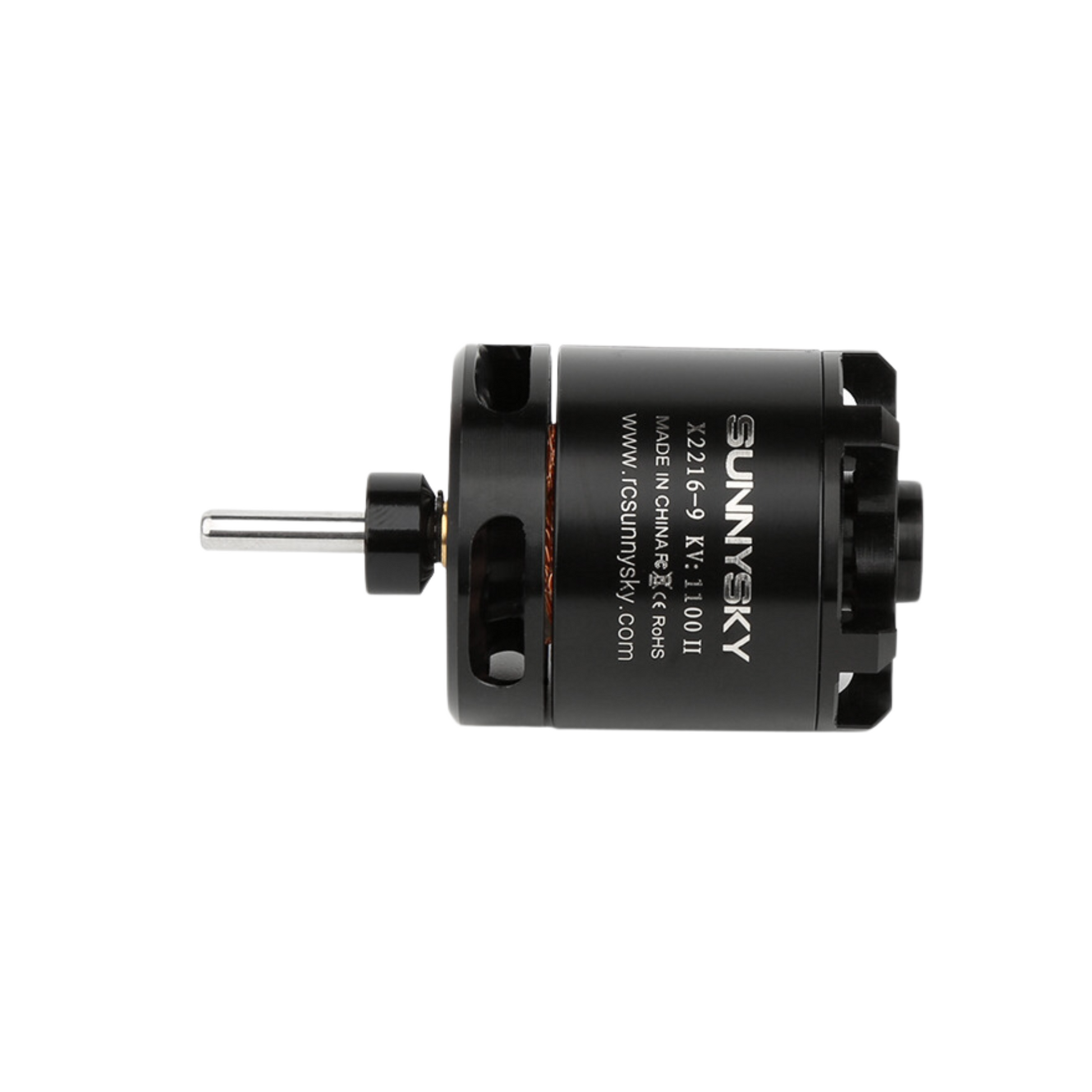 The SunnySky V2 X2216 1100KV motor has a CNC milled body with a hollow design for optimal heat dissipation and weight reduction, giving it a robust appearance. Features a high-strength 420 stainless steel shaft for durability and resistance to bending. The upper and lower engine covers are made of 6061-T6 aircraft aluminum alloy for increased strength. The motor is equipped with imported NMB mini bearings, which ensure quiet, stable operation and extended service life. Hand wound spools increase efficiency and performance. Note: This is a short shaft version.
