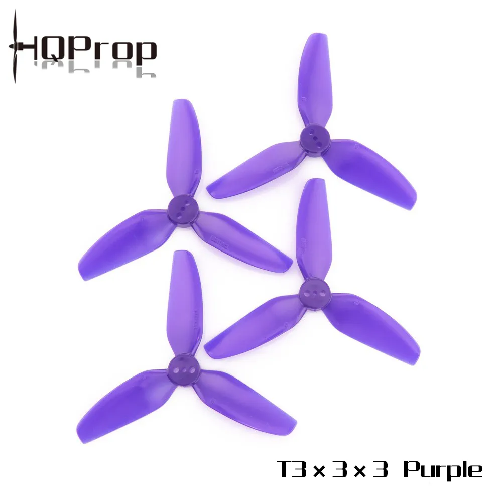 Propeller HQProp Durable 3-Blade 3"" Purple (2CCW+2CW) The HQProp Durable 3" 3-Blade Propellers are ideal for micro quadcopters that require reliable performance and precise control. With a 3" diameter and 3.0 pitch, these propellers deliver punchy performance and responsive response, ideal for both racing and freestyle flying. Weighing just 1.48g each, they deliver quick motor response and balanced flight dynamics. Constructed from durable polycarbonate, they are built to last repeated drops and hard landings.The 9.8mm hub diameter and 4.9mm hub thickness ensure a solid fit on 2mm or 1.5mm shaft motors without the need for adapters, making them a reliable choice for any 3" build. Specifications: Propeller diameter: 3 inches Ascent: 3 Number of sheets: 3 Material: Polycarbonate Weight: 1.48g (each) Hub diameter: 9.8 mm Hub thickness: 4.9 mm Shaft diameter: 2 mm / 1.5 mm / double-sided use Color: Purple The package contains: 2 × HQProp Durable 3-Blade 3" CW Propellers 2 × HQProp Durable 3-Blade 3" CCW Propellers
