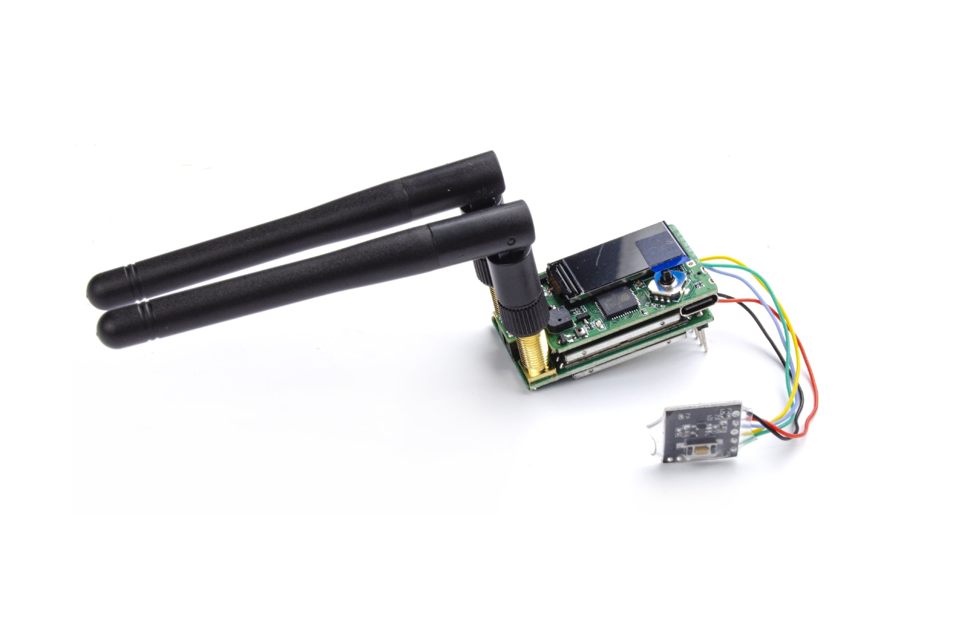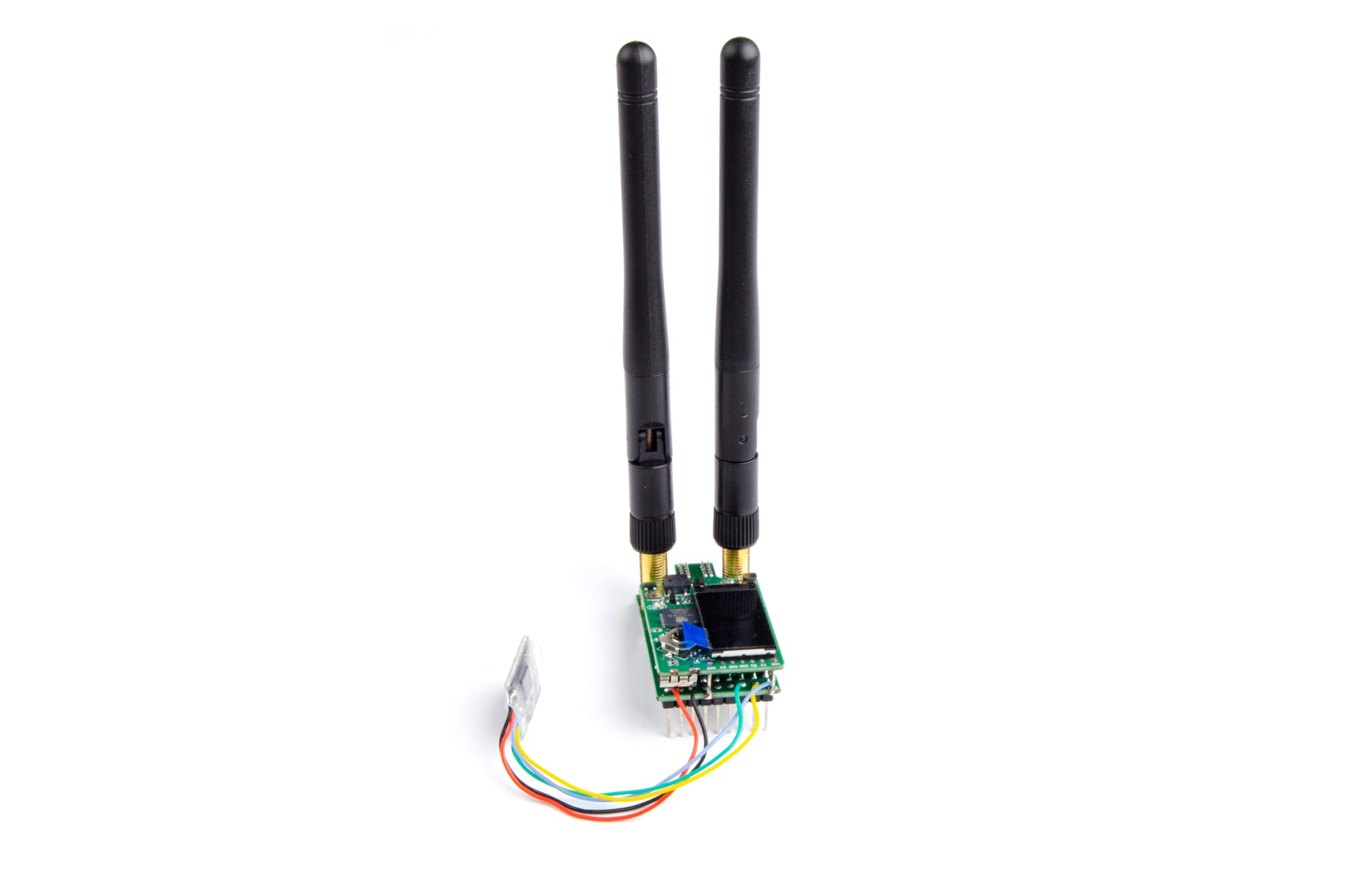 This receiver supports the frequency range from 4.9 GHz to 6.1 GHz and offers 96 channels for trouble-free signal reception. The compact design features a user-friendly menu system with three mode selection and frequency settings. The package includes an ELRS backpack.